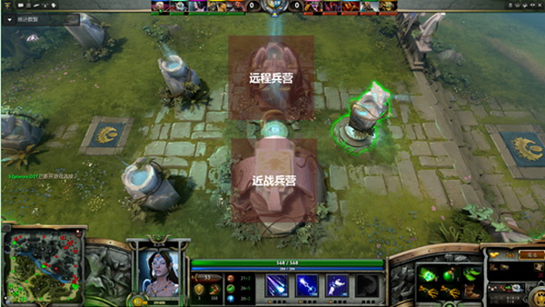 天辉和夜魇基地的兵营上中下三路对称地生产小兵,游戏开始后,每30秒产生一波小兵。小兵不受玩家控制,自动沿着路线攻击遇到的敌方小兵或者敌方英雄。