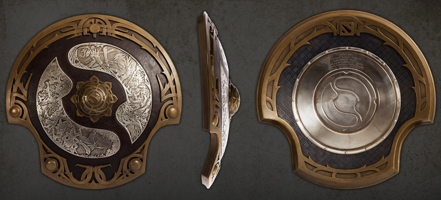 完成后的冠军盾从材质上透出一股力量与美感,这是属于整个DOTA2玩家社区的永久性奖杯。盾牌的主体由青铜与皮革通过纯手工制成,中央由战龙环绕,电镀银色。反面有象征胜利者的硕大圆形徽章,由一整块纯银制成,篆刻着冠军队伍的成员姓名。